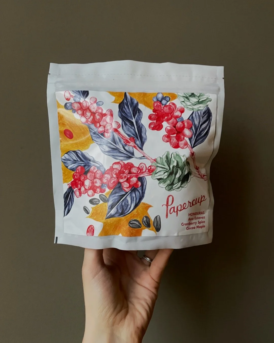 I developed a hand-drawn label and bespoke print that wove together the coffee’s unique flavour notes with a festive, contemporary colour palette. The aim was to create packaging that felt both seasonal and true to Papercup’s warm, craft-driven identity.