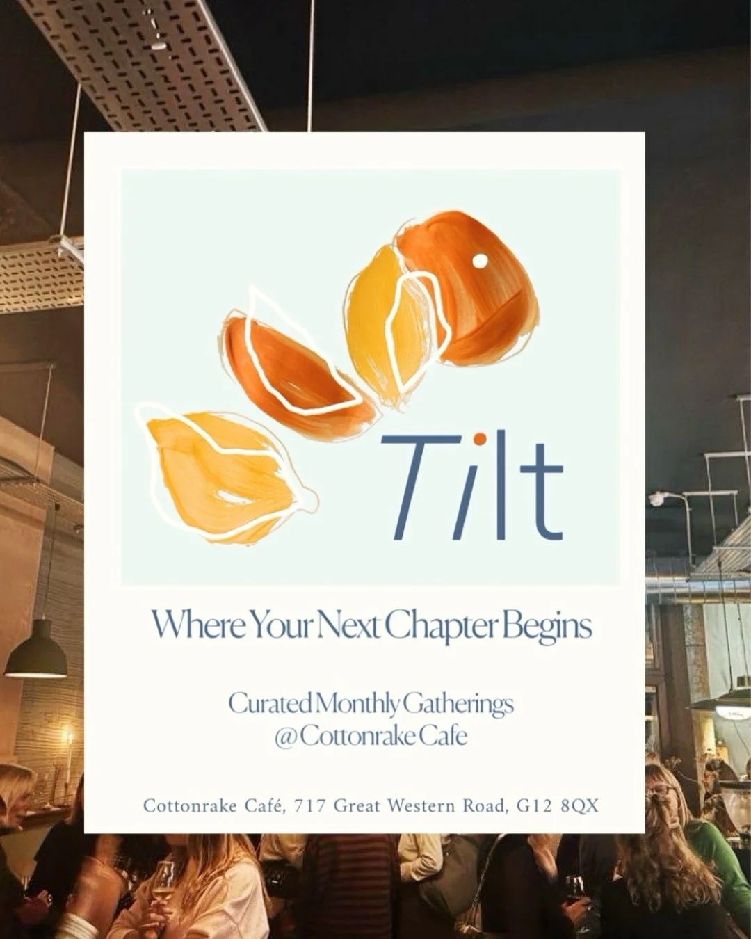 “Tilt” is a collaborative branding project for a new monthly gathering, created in partnership with a local event specialist and the venue’s creative team. I developed and illustrated the logo using a blend of paint, pen and pencil to bring a tactile, hand-crafted feel to the visual identity.