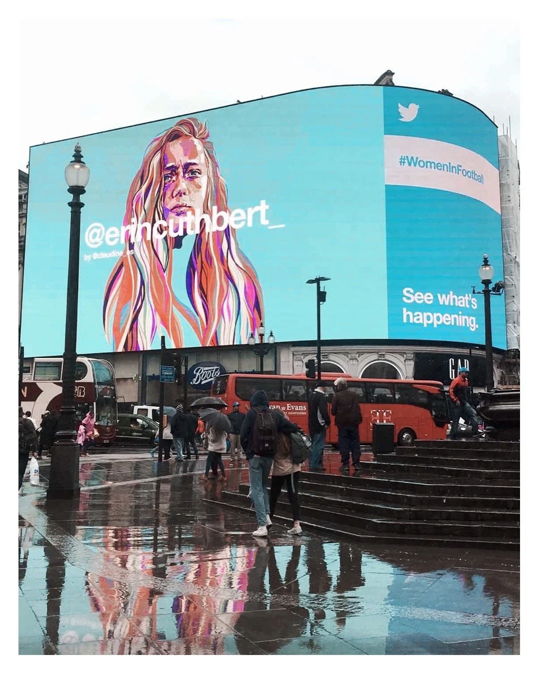 I was commissioned by Twitter to create a mural for their 2019 Women’s World Cup campaign. As part of the project, I was paired with Scottish footballer Erin Cuthbert, designing an artwork that celebrated her talent and championed women in sport.